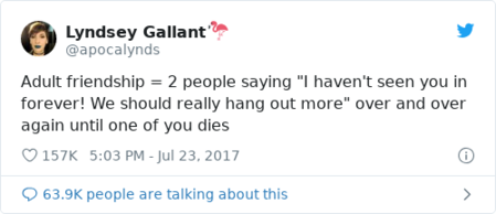 | Whenever I think about the challenge of making plans, this tweet comes to mind: I've let my fair share of friendships dissolve into an endless series of "we should grab a bite soon" texts. I used to think technology could help on that front, but 2020 taught me about the realities of video call fatigue. But finding time for friends doesn't have to be a hassle. Welcome to Day 2 of A Better Week. The benefits of socializing are clear. It doesn't just improve our mood; studies have shown it can impact our long-term health, suggesting a strong connection between social relationships and expected life-span. A 2015 analysis of more than 3.4 million people across 70 studies found that the absence of social connections carried the same risk as smoking up to 15 cigarettes a day. It can be tempting to look back fondly at our early friendships. Those relationships took much less effort to maintain — hanging out was built-in to our schedules through playdates, sports and school. The closest adult version of this dynamic is the workplace friendship. We consistently interact with our colleagues during the day, which would often naturally segue into eating lunch together or grabbing a post-work drink. The pandemic paused many of those friendships for a while, leaving many of us lonelier than ever. So what happens with friendships that require more effort? (Jennifer Tapias Derch for The Post) | Studies have shown that social circles tend to peak in our mid-20s. As our friend groups shrink, making new friends in our 30s can feel more challenging. I wanted to be more proactive in how I approach my friendships, so I spoke with Laura Vanderkam, an author of several time management and productivity books. "Scheduling stuff is this huge barrier often to seeing friends," Vanderkam said. "The best way to ensure you're going to see them is to have some sort of recurring event that's kind of built into your life." Vanderkam suggested scheduling a consistent activity with your friends, such as a weekly workout class or monthly book club. These activities can also be virtual, like pegging a recurring phone call to a long walk. "When these things are built into our schedules, then they happen," she added. It also doesn't need to be a productive activity. Vanderkam used the example of a weekly happy hour. Setting it up on the same day every week allows you to plan around it. Your friends can also incorporate it into their routines. Most importantly, you avoid the vague "let's grab a drink sometime" now that you have a day set aside for those plans. I don't have any children, and neither do most of my friends, so dedicating an evening every week made sense for my schedule. I settled on Thursdays, as it allows me the flexibility to make plans earlier in the week. My goal was to spend that evening with friends I don't work with and don't see as often as I'd like to. I realize that this approach isn't necessarily tenable for everyone, particularly for those with young children, so another option is setting up a shared calendar with your friends. This can also be effective for scheduling phone calls with long-distance pals in different time zones. I made it official by blocking out two hours of my evening, 6 to 8 p.m., on my calendar app with a simple, broad description: "Seeing a friend," which may sound like I'm having an affair. I should probably find a better title. I set it so that the meeting recurred every week. The following Monday, I made plans to catch up with a pal that Thursday. Unfortunately, by the time the day came around, he was under the weather, so he asked if we could reschedule. In the past, this would have probably meant an indefinite future date, but following my new strategy, I simply moved it back a week to the following Thursday. I kept the recurring event on my calendar, and even as normal life was completely upended, the "seeing a friend" notification reminded me to set aside time to regularly check-in with friends and family. Your turn: Try blocking off a few hours on your calendar this week to set aside for a friend, then make plans. No more vague texts. Coming tomorrow: Buying back your time |