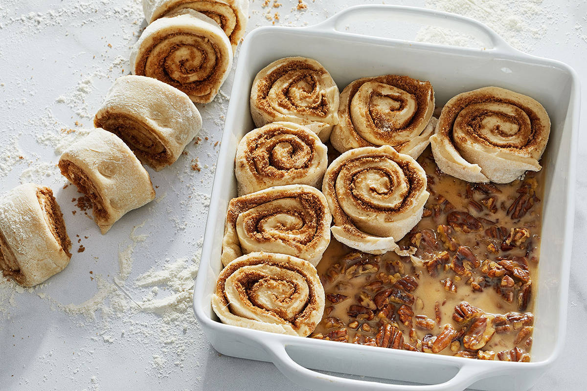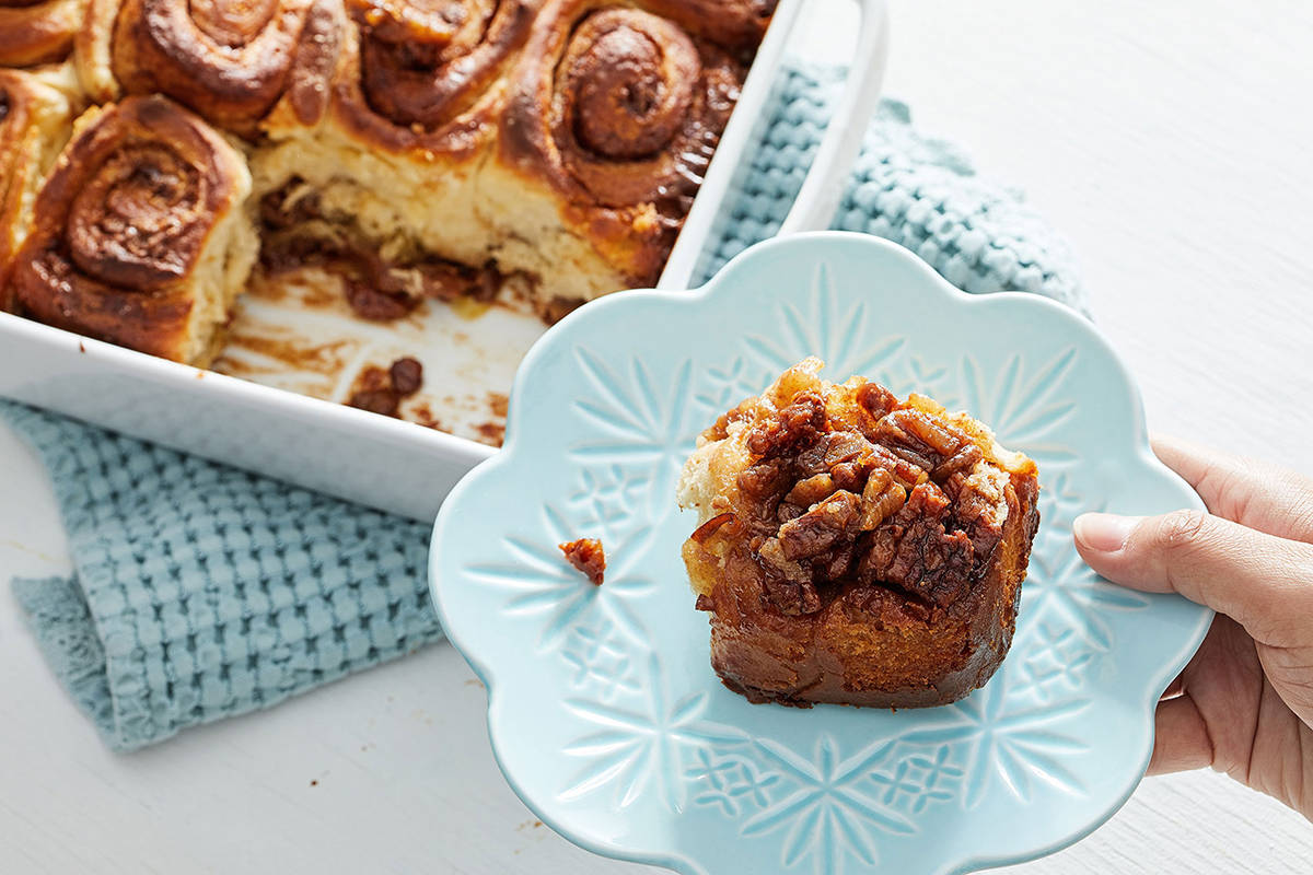 For the topping: 1/2 cup (120 milliliters) heavy cream 1/3 cup (113 grams) honey 2 tablespoons (28 grams) unsalted butter 1/4 teaspoon kosher salt 1 1/4 cups (125 grams) coarsely chopped pecans StepsMake the dough: In the bowl of a stand mixer fitted with a dough hook, mix the yeast with warm water until combined. Add the flour, milk, brown sugar, egg, vanilla and salt. Using a silicone spatula, stir the mixture into a shaggy dough. Place the bowl on the stand mixer and mix on low speed, slowly adding chunks of butter as the dough comes together. If the dough looks too dry, add another tablespoon of milk. Increase the mixer speed to medium and knead the dough until it begins to pull away from the sides of the bowl, about 4 minutes. Transfer the dough to a lightly floured work surface and knead by hand into a cohesive, relatively smooth ball, about 3 minutes. Place the dough in a large greased bowl, cover with plastic wrap and allow to rise in a warm place until doubled in size, 1 to 1 1/2 hours. Make the filling: While the dough rises, in a medium bowl, stir together the sugar, cinnamon, nutmeg, cloves and salt until combined. Reserve the room-temperature butter for use in assembling the sticky rolls. Make the topping: In a medium saucepan over medium heat, combine the cream, honey, butter and salt and bring to a simmer. Reduce the heat to low and let the mixture gently simmer until slightly thickened, about 3 minutes. Remove from the heat and stir in the pecans. Make the rolls: Generously flour a work surface and unwrap the dough onto it. Using a floured rolling pin, roll the dough into a rectangle about 12 x 15 inches. Spread the reserved butter over the dough and sprinkle the filling mixture on top. Starting with the long edge of the dough, lift and roll it into a tight log, seam-side down. | Using a sharp knife, trim off the uneven edges. Slice the log in half, and cut each half in half again. Then slice those four portions into thirds, which will leave you with 12 equal pieces. Pour prepared pecan topping into a 9-inch square pan. Nestle the cut rolls over the topping. Cover loosely with a clean kitchen towel and allow to rest while the oven preheats, about 20 minutes. Preheat the oven to 375 degrees; position the rack in the upper third of the oven. Uncover the rolls and bake for 30 to 32 minutes, until golden brown and bubbling. Remove from the oven and let cool in the pan for 10 minutes. While the rolls are still warm, run a butter knife around the edges of the pan and invert the entire pan onto a large serving platter. Scape any nuts or caramel that remain in the pan on top of the rolls. Serve warm. Nutritional facts (per roll): Calories: 420; Protein: 5 g; Carbohydrates: 48 g; Fat: 24 g; Saturated Fat: 12 g; Cholesterol: 65 mg; Sodium: 130 mg; Fiber: 2 g; Sugar: 23 g. | Did you make the recipe?We want to see how your sticky rolls turned out! Share your Baking Basics creations with us on Instagram with #eatvoraciously. Your Dutch Oven Breads and Apple Cranberry Crumb Pies are dazzling us. Shout outs this week to Caroline and Brittany. Next week: Tall, tender buttermilk biscuits that belong on your dinner table. Have a question about the recipe?Email us at voraciously@washpost.com or message @eatvoraciously on Instagram. If you're having trouble viewing or receiving this or other newsletters from the series, or have other email tech questions, drop us a note here. Visit Voraciously.com for recipes, how-to guides, the latest food trends and much more. Joy Wilson is a self-taught baker turned professional, food photographer and cookbook author. She is the author of "Homemade Decadence" and teaches baking workshops at her studio, the Bakehouse, in New Orleans. Find her at @joythebaker on Instagram and Twitter. |