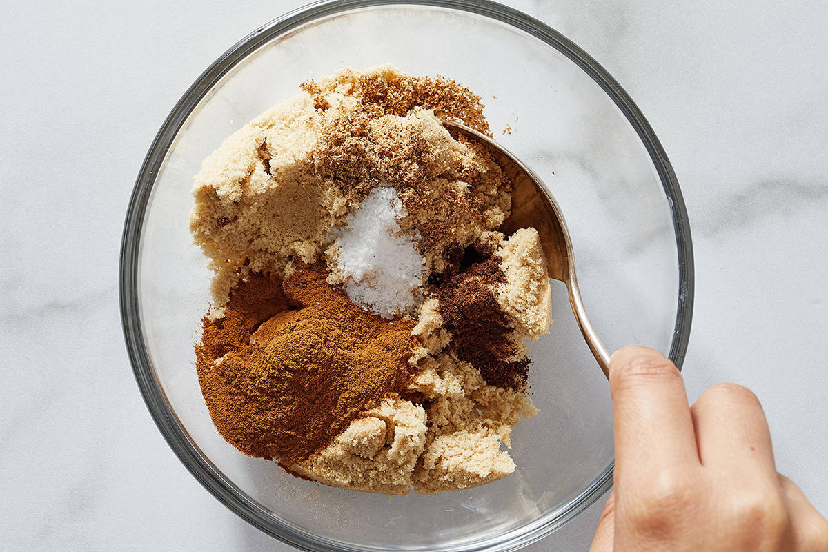 For the filling: 1/2 cup (99 grams) lightly packed light brown sugar 1 tablespoon ground cinnamon 1 teaspoon freshly grated nutmeg 1/8 teaspoon ground cloves 1/2 teaspoon kosher salt 6 tablespoons (85 grams) unsalted butter, at room temperature