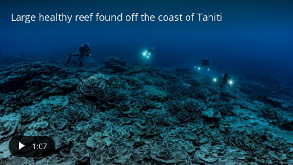 | Explorers discovered a stunning coral reef near Tahiti. | - What makes it special: It's one of the world's largest healthy reefs, undamaged by global warming — unlike so many others.
