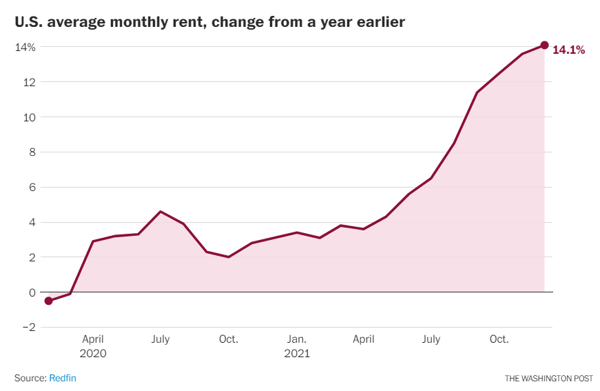 | | |  | Rents have skyrocketed in cities across the U.S. | - The numbers: The average monthly cost rose 14% last year, to $1,877 a month. In cities like Austin, New York and Miami, rents went up by as much as 40%.