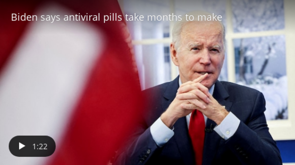 | | Biden acknowledged the drugs' scarcity in remarks yesterday, but said the government was doubling its order of Pfizer's pill to 20 million treatment courses this year. | - "Due to the complex chemistry … to make the pill, it takes months literally to make a pill," he said. But he stressed the medication is "already saving lives."