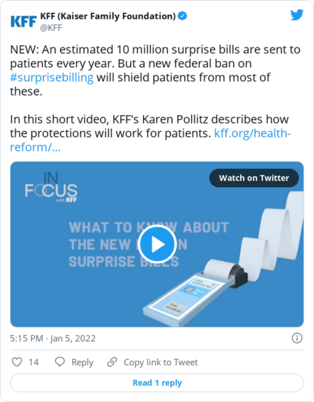 | | The Kaiser Family Foundation | | | | | | Providers are no longer allowed to send eye-popping bills to insured patients who inadvertently get care from an out-of-network provider. | | But if they do send such a bill? It's up to the patient to try to get it fixed. Roughly 10 million surprise bills had been typically sent out a year, according to the Kaiser Family Foundation, meaning hundreds of thousands of problems could arise even if compliance with the new law is high. The law required the Biden administration to set up a national consumer complaints system, where patients can call a toll-free number or submit a complaint online and get federal help investigating the bill. The help line has received over 300 calls since it launched Jan. 1, mostly from consumers wanting to learn more about the new ban, according to a Department of Health and Human Services spokesperson. "It's really going to be critical that the public's aware of their rights," said Jane Sheehan, the director of federal relations at Families USA, a consumer health advocacy group. | - Sheehan teased an upcoming public education campaign but declined to share details.