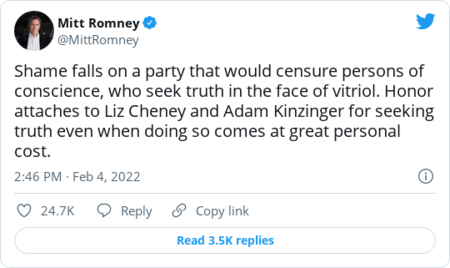 | Sen. Mitt Romney condemns GOP leaders' move to censure Reps. Cheney, Kinzinger | | "Sen. Mitt Romney (R-Utah) on Friday criticized his party's leaders, including his niece, for seeking to punish the two Republican members of the committee investigating the Jan. 6, 2021 attack on the Capitol by a pro-Trump mob," Felicia Sonmez reports. | NFL, Washington agreed to keep details of workplace probe secret, document shows | | "Under an agreement signed shortly after the NFL took over the investigation into its Washington team's workplace, the league and team vowed that neither side would disclose information about the probe without the approval of the other, a document released by House Democrats on Friday shows," Liz Clarke reports. | Biden administration tells Congress that key coronavirus funds are dwindling | | "Nearly all of the money in a key federal program to boost coronavirus testing, therapeutics and vaccines appears to have been committed or already shelled out, raising the potential that the Biden administration may have to ask Congress to approve additional aid," Tony Romm and Jeff Stein report. | Gorsuch to headline GOP lineup of speakers at Federalist Society; media barred from his speech | | "Justice Neil M. Gorsuch is speaking to the conservative Federalist Society as part of a political lineup of former vice president Mike Pence, Florida Gov. Ron DeSantis (R) and Donald Trump's onetime press secretary, an appearance that comes as his fellow justices repeatedly dismiss criticism that the Supreme Court is partisan," Mariana Alfaro reports. | Gov. Noem signs transgender athlete ban into law in South Dakota | | "With [South Dakota Gov. Kristi L.] Noem's signature, South Dakota became the 10th state nationwide to enact such a ban, some of which are now facing legal challenges. She was the first governor this year to sign one into law," John Wagner reports. | Putin meets Xi in show of solidarity as U.S. warns against helping Russia evade Ukraine-linked sanctions | | "Russian President Vladimir Putin and Chinese leader Xi Jinping met Friday on the sidelines of the Beijing Winter Olympics in a show of solidarity amid a spiraling crisis over the Kremlin's military buildup around Ukraine that could further complicate the diplomatic standoff," Andrew Jeong and Emily Rauhala report. | | |  | Lunchtime reads from The Post | | Perspective: Jeff Zucker's legacy is defined by his promotion of Donald Trump | Jeff Zucker in 2019. (Paul Sancya/AP) | | | "Zucker, as much as any other person in the world, created and burnished the Trump persona — first as a reality-TV star who morphed into a worldwide celebrity, then as a candidate for president who was given large amounts of free publicity," columnist Margaret Sullivan writes. "The through line? Nothing nobler than TV ratings, which always were Zucker's guiding light, his be-all and end-all and, ultimately, his fatal flaw." | - "Zucker created Trump the TV sensation, which was the necessary foundation for Trump the candidate. Years later, after moving from NBC to CNN, Zucker recollected very well that Trump was a self-proclaimed 'ratings machine' — a rare instance of Trumpian truth-telling."