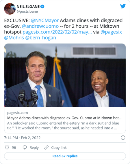 | | |  | The Data | | | A roundup of Biden's environmental policies, visualized: How well do you know Biden's environmental track record? Take our quiz. | | |  | The Media | | | |  | Viral | | | Dining in NYC: | "New York's very sociable new mayor cleared his busy schedule for a lengthy dinner meeting with run-out-of-office ex-Gov. Andrew Cuomo on Tuesday night," Page Six's Ian Mohr and Bernadette Hogan report. Mayor Eric Adams dined with Cuomo "for about two hours at Midtown hotspot Osteria La Baia … Cuomo ordered the skate — which is apparently the restaurant's specialty … It was not clear what Adams, a former diabetic-turned-vegan, ordered." | | | Upsetting judges on a popular tv show: | "Rudy Giuliani was unmasked as an exiting costumed contestant in last week's taping of the first Season 7 episode of Fox's popular primetime series The Masked Singer," Deadline's Mike Fleming, Jr. reports. "Deadline hears that as soon as they saw Giuliani, judges Ken Jeong and Robin Thicke quickly left the stage in protest." | | | Exiled in South Florida: | | | | | | "The beachfront in Surfside, Florida, is one of the more peaceful and unexploited stretches of public sunning space in the entire sprawling South Florida metropolis," the Washingtonian's Bob Norman writes. "Grass-topped sand dunes and sea-grape trees hem the length of the beach and separate it from the town's semi-famous 'hard pack': a serene one-mile pathway of compressed sand beloved by runners." | - "One sunny day last June, a Surfside resident spotted a tall blond woman on the hard pack, with a little white dog on a leash. She watched as the woman led the dog off the pathway toward the beach, right past a sign that clearly said dogs weren't allowed."