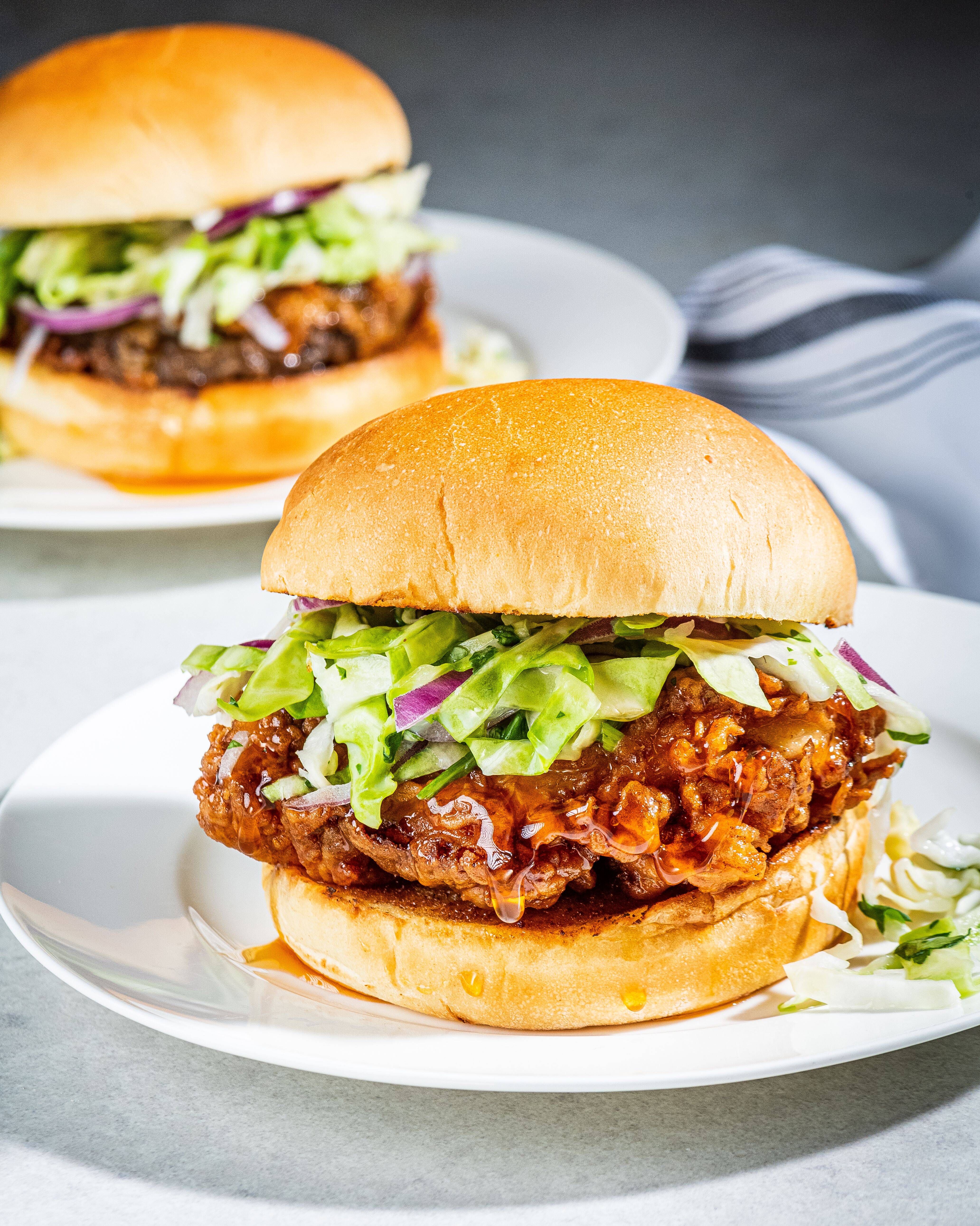 | Did a friend forward this to you? Sign up here. Hot and sweet Caesar salad was invented in Mexico, cheesecake in Greece, and fried green tomatoes probably originated in the Midwestern United States. I find the history of recipes exciting — making something from another culture or era can be a way of traveling to another place, or back in time. Though the origins of many now-common dishes are muddled in mystery, hot chicken's history, a spicy tale of love and revenge is alive and well. I wrote about it this week after experiencing the heat while visiting Los Angeles recently. No, hot chicken didn't originate in Los Angeles. Nashville's Prince's Hot Chicken Shack was the first place to sell the dish. There, the most popular order is bone-in chicken quarters, fried to a crisp and doused in red, fiery spice. But a few years ago, a member of the family, Kim Prince, opened Hotville in L.A.'s Baldwin Hills neighborhood. She serves the same recipe her great-great uncle started selling in the 1930s. You can order bone-in pieces, which are served with slices of white bread and pickles; fish, which is fried and covered in the same blend of spices; or hot chicken sandwiches. After I took my first bite of a hot chicken sandwich at Hotville, in the key of Music City Medium, I thought I was going to be all right. The heat is warming at first, like a glowing ember, cozy and soft. So I took another bite. But as you chew and swallow, the fireworks start to pop. I put the sandwich down and reeled in my chair. My hubris couldn't handle the heat. As I was wiping sweat from my forehead, another patron passed my table. "Hope you put your toilet paper in the freezer!" he said with a smirk. (I only really understood that comment about 16 hours later!) At Hotville, when patrons can't handle the heat, they're offered ranch dressing (the dairy helps cut the heat), extra pickles (the acidity cools the tongue) and honey. "My daddy, Martin Prince, drizzles honey on everything," Kim Prince says. I squeezed two packets of honey on the chicken in front of me and took another bite. It hurt so good. Honey indeed helps offset the heat, and helped inspire this recipe for hot chicken (or mushroom) sandwiches. It's not the Prince family recipe — it might not even come close — but it does deliver a peppery punch to the gut, whether you eat meat or not. I want to be clear: This recipe is nothing more than an homage to Prince's. Everyone who enjoys lots of spice should try the chicken at Prince's or Hotville. But if you can't make it there, or you don't enjoy food with lots of heat, this recipe will give you a manageable taste of the classic. It calls for hot sauce in the brine, cayenne in the batter and chile flakes in the hot honey. Omit some or all of that spice to suit your tastes. Then, serve it with a crunchy buttermilk slaw and lots and lots of pickles. 💙 I've received a few kind notes from readers who are thinking of the people of Ukraine – I am, too. If you're looking for Ukrainian recipes to make this weekend, consider this potato and green bean soup, a hearty borscht or maybe this lighter variation. My colleagues are working on a couple of new recipes, so watch out for those, too. 💛  | Today's recipe | Photos by Rey Lopez for The Washington Post; food styling by Lisa Cherkasky for The Washington Post | Fried Chicken or Mushroom Sandwiches with Hot Honey and Slaw - To make vegan sandwiches >> make the mushroom variation using soy milk instead of buttermilk. Branches of oyster mushrooms get especially crisp around the edges and are slightly preferable to portobello caps. Firm tofu, pressed and cut into sandwich-size slabs, and patted dry, work too. Omit the honey, or use agave or another plant-based syrup instead.