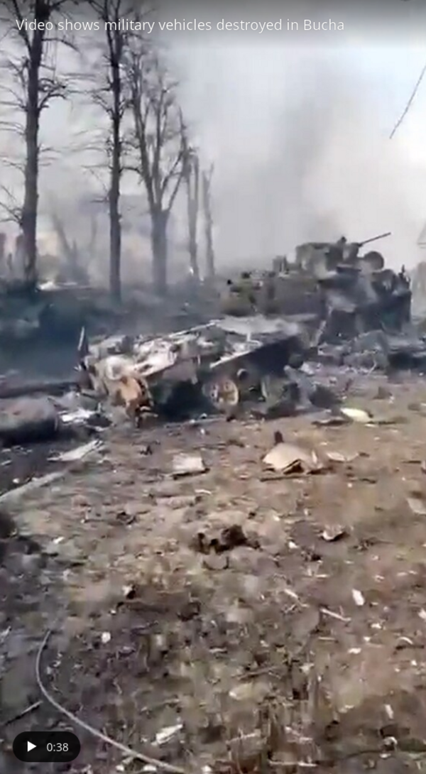Six of the clips are featured in the video below. Joyce synchronized audio and visual cues in the videos and confirmed the locations by searching around Kyiv on Google Earth for similar shapes to the ones seen in the footage to verify the incident. | | | Our team verified videos that showed the aftermath of heavy fighting outside a man's home near Kyiv on Feb. 27. I (Dalton) speak Russian, and knowing the language provided information about the location of the video, and we knew from previous reporting that there had been fighting in the small town of Bucha involving the units mentioned.