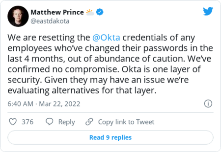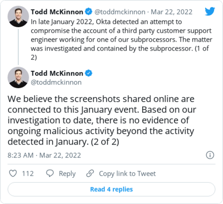 | | The warning reflects a grave concern that U.S. companies aren't sufficiently prepared to withstand a Russian cyber assault — even after years of concerted pressure from government cyber officials that ramped up even further in the run up to the Ukraine invasion. Neuberger lamented that foreign hackers continue to regularly crack into companies using known computer bugs that the companies could have patched against if they were more diligent. "This is deeply troubling," she said. Neuberger compared the companies to New Yorkers that were robbed after leaving their doors unlocked. The warning also reflects a deep anxiety that companies that have girded their defenses against Russian hacking will let their guards down as the Ukraine conflict drags on. "The White House is running out of ways to keep the alert levels up for cyber incident responders," Tatyana Bolton, a former Cybersecurity and Infrastructure Security Agency official who now leads cyber programs for the R Street Institute, told me. "It's very difficult to stay on a high level of alert for a long amount of time because we're humans and alert levels go down as time passes." A second U.S. government official Ellen spoke with described "fatigue" among industry cyber pros who've been working long hours for weeks on end as part of CISA's "Shields Up" initiative to guard against Russian hacking. "Since this heightened threat environment started, it's been like 'Shields Up.' So people ask, 'When do we put shields down?' " the official said. Some industry officials said the government's latest alert didn't tell them anything they didn't already know. "I don't see anything new there that we haven't already been informed of," Bill Fehrman, CEO of Berkshire Hathaway Energy and co-chair of the Electricity Subsector Coordinating Council, whose sector was given a classified briefing last week, told Ellen. | | "Our defensive postures remain in 'Shields Up' position," he added. Government only has limited options to make private industry improve their cyber defenses. Officials have gone into hyperdrive sharing information about cyberthreats and best practices, but mostly lack the authority to compel companies to adopt those practices. In a handful of industries where government has broader cyber authorities, such as pipelines, its requirements have received a cool reception from industry leaders. Congress recently passed a bill requiring critical infrastructure firms to alert the government when they're hacked, but even that will take a year or longer to go into effect. One hope among cyber analysts is that the focus on improving cyber defenses will outlast the current conflict. "My hope is that the Russia crisis will spur long-term investments in cybersecurity and critical infrastructure resilience," Mark Montgomery, executive director of the congressionally led Cyberspace Solarium Commission, told me. "My fear is it will be treated as it has been [after cyber crises] in the past and forgotten soon thereafter." | | |  | The keys | | Okta says no ongoing malicious activity after 'attempt to compromise' third-party contractor | | The online verification company stated in a tweet that screenshot photos posted to Telegram by the ransomware hacking gang LAPSUS$ seemed to be related to a January "attempt to compromise the account of a third-party customer support engineer working for one of our subprocessors." "There is no evidence of ongoing malicious activity beyond the activity detected in January," Okta CEO Todd McKinnon said. | | It wasn't clear from the statement how much access the gang had to Okta systems. The hacking gang claimed the screenshots showed internal Okta systems. Okta said in an earlier statement that it was investigating the breach reports. Okta is used by thousands of companies to verify employees' identities before they access company digital systems making it an especially valuable hacker target. One of the hacker screenshots purported to be of a dashboard for the cybersecurity company Cloudflare. Cloudflare CEO Matthew Prince said the company was resetting Okta credentials for some users out of an "abundance of caution." | | Microsoft is also investigating LAPUS$ claims it breached some of the company's systems. Here's more from CyberScoop's AJ Vicens. | NSO Group's former owners are locked in a court battle with its current owners | The fund that owns NSO is now run by Berkeley Research Group. (Sebastian Scheiner/AP) | | | The fight stems from an effort to assess how much the embattled spyware company is worth — a valuation that could lead to a big payout for the former leaders of a fund that bought NSO Group in 2019, Stefan Kowski and Bastian Lueken of Novalpina Capital, Bloomberg News's Jonathan Browning reports. Kowski and Lueken were ousted by the fund's investors in 2021 and replaced with Berkeley Research Group, which currently runs the fund. NSO's value has likely dropped since then, largely due to extensive reporting by The Washington Post and 16 media partners that found NSO clients used its Pegasus spyware to hack devices belonging to journalists and activists. NSO has reportedly mulled shutting down its Pegasus division since then. "Lawyers for Kowski allege that BRG reneged on a commitment to get the Israeli company fairly valued," Browning writes. "According to emails disclosed in Kowski's filing, BRG responded to say that with NSO shutting down Pegasus, it was therefore 'unfeasible (and was always unworkable)' to conduct an independent valuation." | Iran-linked hackers are trolling the head of Israel's Mossad spy agency | | A group of purported Iranian hackers released a document that they said was a stolen 2020 pay stub belonging to Mossad chief David Barnea. The gang said more sensitive leaks were on the way, Haaretz's Omer Benjakob reports. It's not clear if the leaked document is authentic, but it "was intended to disprove Israel's claim that the hack was of an old device belonging to his wife" an
