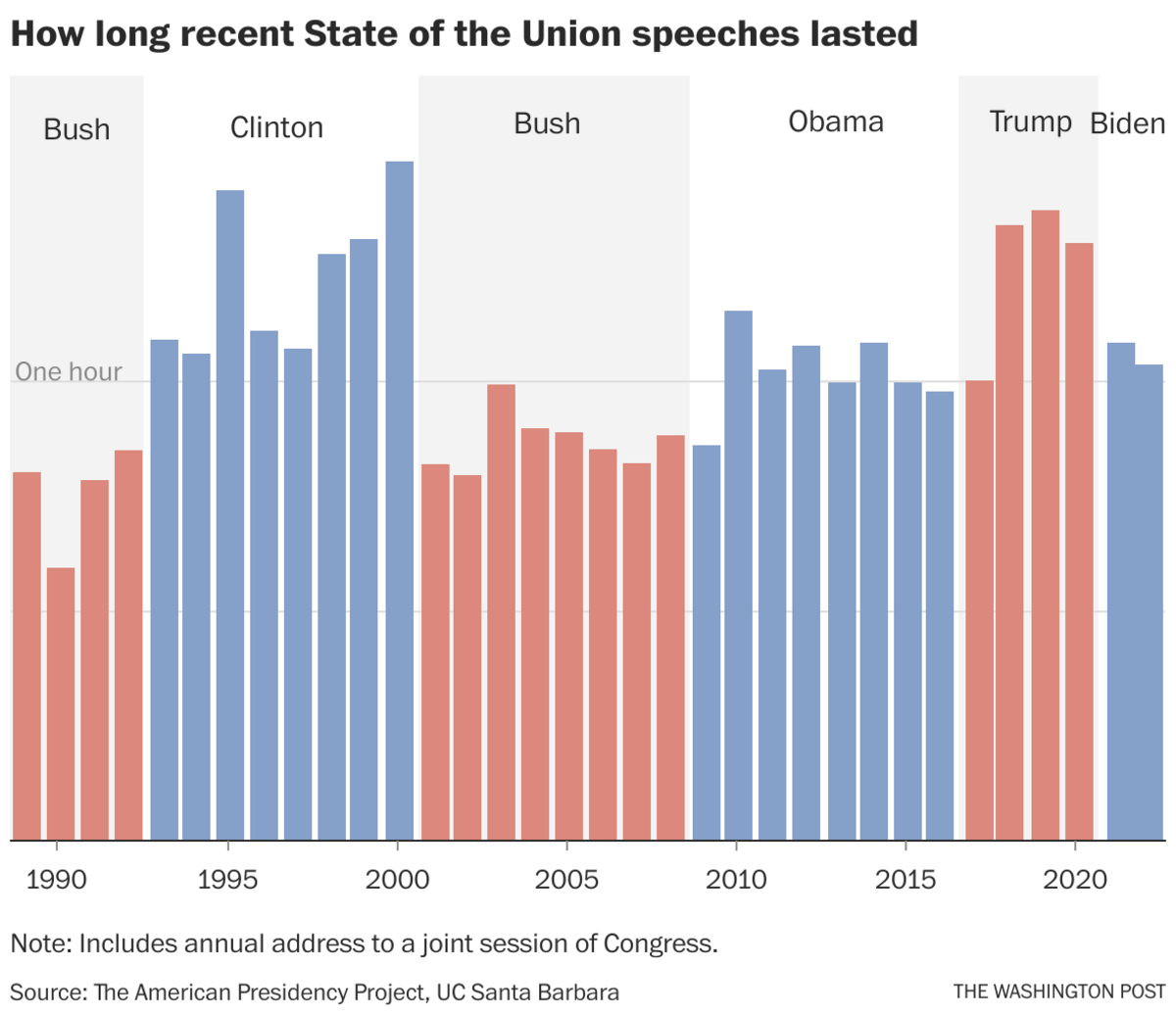 | Fallout from judges failing to recuse themselves over financial conflicts is spreading | | "These violations are having real-world implications for people and companies who resolve disputes in court. The appeals courts now have to decide whether the conflicts were enough to warrant wiping out the rulings by the conflicted judges," the WSJ's James V. Grimaldi, Joe Palazzolo and Coulter Jones report. The scale: "Overall, at least 55 cases overseen by judges with recusal violations have been appealed, reconsidered or reassigned to new judges." | | |  | The Biden agenda | | White House unveils new covid plan, says shutdowns, school closures no longer necessary | President Biden delivers the State of the Union address to a joint session of Congress at the U.S. Capitol on Tuesday. (Saul Loeb/Reuters) | | | The White House released a new wide-ranging strategy for the next phase of the pandemic on Wednesday, Yasmeen Abutaleb, Lena H. Sun and Dan Diamond report. What it is: "The pandemic road map focuses on four goals: protecting against and treating covid, including a 'test to treat' initiative that would give people antiviral pills on the spot if they test positive at a pharmacy; preparing for a potentially dangerous new variant; preventing economic and educational shutdowns; and expanding vaccinations worldwide." What it isn't: A victory proclamation. "Biden and his administration said they are 'clear-eyed that new variants might arise,' but that they have prepared for such a scenario by amassing vaccine doses, antivirals, masks and tests." | Biden administration launches new task force targeting Russian oligarchs | | "The group of interagency law enforcement officers from the FBI, Marshals Service, IRS, Postal Inspection, Homeland Security Investigations as well as agents from the Secret Service will investigate and prosecute sanctions violations in connection with Russia's ongoing assault in Ukraine," CNBC's Amanda Macias reports. | Did you miss the State of the Union? Or just want to relive it? | | The Post's video team has you covered. Here's Biden's first SOTU address in full. | | |  | State of the Union speech times, visualized | | | "The State of the Union address lasted about an hour and two minutes, slightly shorter than the joint address to Congress that Biden delivered last April. It was briefer than former president Donald Trump's typical State of the Union speech, which averaged an hour and 20 minutes, according to the American Presidency Project." Here's 4 takeaways from the speech. | | |  | Hot on the left | | John Bolton: Trump 'barely knew where Ukraine was' | | Former national security adviser John Bolton criticized former President Donald Trump Monday night on Newsmax's "Rob Schmitt Tonight," When the host said the Trump administration was "pretty tough on Russia, in a lot of ways," Bolton disagreed, Business Insider's Jake Lahut and John Haltiwanger report. What Bolton had to say: | - "We didn't sanction Nord Stream 2," he said. "We should have. We should have brought the project to an end."