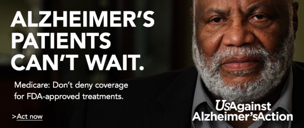 | | | | | | | 1,000 Americans slip from mild to moderate Alzheimer's disease every day. There's no time to waste. Medicare must cover FDA-approved treatments now. | | | |  | | | | - Health care ranks third among the top issues for all voters.