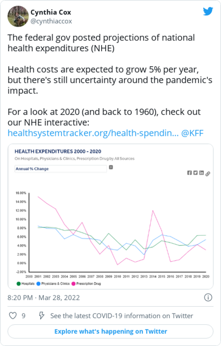 | | |  | Agency alert | | | We have even more numbers for you today … CMS estimates national health spending growth slowed down after a rise due to covid-19. | | In 2020, national health spending increased 9.7 percent — the fastest rate in nearly two decades. But the growth was just 4.2 percent last year as supplemental funding associated with the pandemic declined significantly, according to a new CMS report. The 10-year forecast: The report estimates that annual growth in health spending is expected to average 5.1 percent over 2021-2030 — and reach nearly $6.8 trillion by 2030. Growth in the nation's gross domestic product is also projected to be roughly 5.1 percent annually over that same time period. That means health care is expected to account for nearly a fifth of the U.S. economy in 2030 — roughly the same as in 2020. | | Cynthia Cox, Kaiser Family Foundation: | | | | | | |  | White House prescriptions | | The White House's latest effort to thwart covid-19: Clean indoor air | Making improvements to indoor air filtration systems has been shown to significantly reduce coronavirus transmission rates. (Youngrae Kim/The Washington Post) | | | The Biden administration is emphasizing airborne transmission as the primary driver of coronavirus infections — a reversal from federal guidance issued earlier in the pandemic, our colleague Dan Diamond reports. On tap today: The science behind clean indoor air will be featured at a virtual event hosted by the White House science office this afternoon. Health officials had initially maintained that the virus was most often spread through droplets from a nearby person. The focus was on mitigation measures that prioritized avoiding direct contact between individuals, like social distancing and masking. But the virus is often transmitted through small particles in the air that are aerosolized and can travel long distances — a dynamic requiring different approaches to curbing the spread. Under the American Rescue Plan, $122 billion for schools and $350 billion for state, local and tribal governments are available to support improving ventilation, filtration and clear indoor air, the White House wrote in a blog post last week. | | Alondra Nelson, acting White House science director: | | | | | | |  | Coronavirus | | U.S. reaches a new pandemic milestone | A positive coronavirus rapid test taken at home during January 2022. (Bronwen Latimer/The Washington Post) | | | A majority of Americans have contracted the coronavirus, according to a new poll by Monmouth University that suggests infection rates have been disproportionately higher among Republicans, our colleague Aaron Blake reports. By the numbers: | - 52 percent of respondents said they've personally contracted the virus, up from 40 percent in late January.