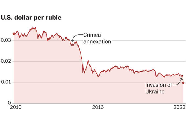 | | | | | | | | | The Washington Post's subscription sale is ending tomorrow! Subscribe now to get this great deal and unlock everything we publish: Four weeks free, followed by $22 for one year. — Kelly Poe, Newsletter Editor (Salwan Georges/The Washington Post) The swift avalanche of nonmilitary actions against Russian President Vladimir Putin has convinced many world leaders that global power dynamics have entered a phase of startling and perhaps enduring change. By Marc Fisher ● Read more » | | | | By Josh Dawsey, Tom Hamburger, Jacqueline Alemany and Rosalind S. Helderman ● Read more » | | | By Júlia Ledur, Dylan Moriarty and Danielle Rindler ● Read more » | | | | Live updates ● By David L. Stern, Danielle Paquette, Rachel Pannett and Ellen Francis ● Read more » | | | | Perspective ● By Michael Cavna and David Betancourt ● Read more » | | | | | | More on Russia's invasion (Alyssa Fowers and Kate Rabinowitz/The Washington Post) The ruble has plummeted after unprecedented sanctions took aim at Russia's central bank. By Alyssa Fowers and Kate Rabinowitz ● Read more » | | | | By Ellen Nakashima, John Hudson, Michelle Ye Hee Lee and Cate Cadell ● Read more » | | | | By Michael Birnbaum, Karoun Demirjian, Alex Horton, Loveday Morris and Jon Gerberg ● Read more » | | | | | | | | | | | | |