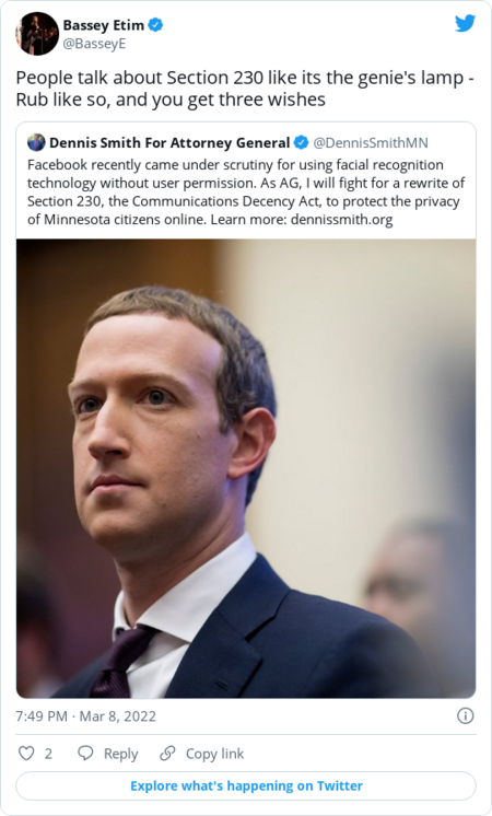 - The Brookings Institution hosts an event on the future of changes to Section 230 on Monday at 10 a.m.