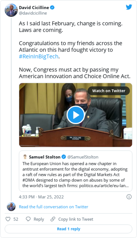 Europe is lapping the U.S. on tech regulation — again | European Commissioner Margrethe Vestager is leading the competition push in Europe. (Francisco Seco/AP) | | | U.S. lawmakers have tried and failed for years to catch up to European officials in creating privacy protections for people's online data. Soon, they may be chasing Europe's lead yet again, this time in reining in dominant tech platforms' anti-competitive conduct and content practices. On Thursday, the European Union finalized a landmark proposal known as the Digital Markets Act (DMA), aimed at blocking the world's most powerful tech companies from squelching competition. In coming months, the bloc is poised to advance another sweeping measure to tighten regulations around how tech companies police content on their platforms, called the Digital Services Act (DSA). Together, the proposals will create perhaps the most wide-reaching regulations for the Internet globally since the E.U. passed its sprawling data privacy rules, known as the General Data Protection Regulation (GDPR). While U.S. efforts to match the E.U.'s privacy rules have languished for years in Washington, there's been growing bipartisan momentum on Capitol Hill to pass new laws on digital competition and content moderation. That has led to the introduction of a flurry of bills that together would mirror some of the most punishing restrictions the E.U. is now poised to enact. Rep. David Cicilline (D-R.I.), chair of the House's antitrust panel, on his legislation to block the tech giants from favoring their own products: | | But even if U.S. lawmakers manage to pass many of their most ambitious tech reforms, the sum of those bills is unlikely to match the sheer scope of Europe's incoming rules. | | The dynamic highlights the uphill battle U.S. policymakers face in setting rules for the Internet, which up until now have been crafted almost entirely by foreign governments and at times U.S. states. The E.U.'s Digital Markets Act would create a slew of new obligations and restrictions for dominant tech companies including Amazon, Google, Apple and Facebook. (Amazon founder Jeff Bezos owns The Washington Post.) That includes blocking the tech giants from giving their own products preferential treatment, prohibiting app stores from requiring that developers use their payment systems, and requiring that major platforms make their services interoperable with competitors' products. The Digital Services Act, meanwhile, would require that large companies open up their platforms to external researchers, that they disclose information about their algorithms to regulators and set tougher restrictions around how they can target users with digital ads. Accountable Tech, a left-leaning advocacy group, argued in a policy memo comparing U.S. and E.U. tech reforms that Europe's incoming regulation "reads like an omnibus bill written by top American lawmakers" because of its overlap with many U.S. proposals. The memo, shared with The Technology 202, notes that there are "corollary proposals put forward by leading U.S. policymakers" that match various aspects of the DMA and DSA, "many of which have bipartisan support." Indeed, U.S. lawmakers have introduced a barrage of bills that together would prohibit companies from favoring their own products, rein in app store practices, force social media platforms to be more transparent with researchers and regulators, and restrict targeted advertising online, among various other aspects of the E.U. regulations. But barring an unprecedented string of tech legislating on Capitol Hill, it's unlikely that every one of those U.S. counterparts will be signed into law in the near future. And many of Congress's most aggressive measures that in some ways go farther than the E.U. regulations — including bills to block the tech giants from scooping up budding rivals and to make it easier to sue to break them up — have yet to gain significant traction in Congress. That means that in all likelihood, Congress may only be able to pass a portion of the reforms that are already slated to take effect this year in Europe, putting the U.S. policymakers behind their European counterparts yet again when it comes to setting rules of the road for the Internet. | | "The fact that they've reached an agreement on such a sweeping set of reforms … should both inspire activists and force U.S. lawmakers to reckon with the reality that if they don't pass legislation, the rules of the digital economy will continue to be written without them," said Accountable Tech co-founder Jesse Lehrich. | | |  | Our top tabs | | How auto regulators played mind games with Elon Musk | Tesla CEO Elon Musk has sparred with regulators over the years. (Samuel Corum/Bloomberg News) | | | When regulators in Washington first tried to investigate Tesla, CEO Elon Musk was irate, The Washington Post's Faiz Siddiqui reports. But since, they have adapted their strategies and opted to "show some spine to win his cooperation," Faiz reports. According to the report, "officials have learned to work with Musk, using a combination of pressure, flattery and threats to persuade him to comply with federal safety measures, according to a half-dozen former regulators, some of whom spoke on the condition of anonymity to discuss sensitive matters. In the past six months, Tesla has issued at least a dozen voluntary recalls, a dramatic turnaround for a company known to quietly issue software updates direct to cars — without alerting the public — to fix sometimes alarming safety problems." Tesla and Musk did not respond to specific questions in a detailed request for comment. Musk said in an email, "For the 100th time, please give my regards to your puppetmaster," referring to Amazon founder Jeff Bezos, who owns The Washington Post. | House and Senate leaders are looking to revive privacy legislation | House Energy and Commerce Chairman Frank Pallone Jr. (D-N.J.) with Rep. Cathy McMorris Rodgers (R-Wash.) a