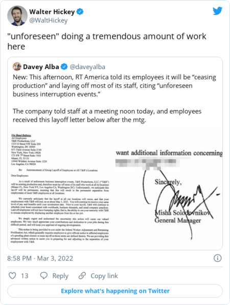 | Happy Friday, Technology 202 subscribers! Below: RT America closes up shop, and Ukraine tries to convert its cryptocurrency haul into cash. First: | Watchdog groups call on FTC to revisit Trump-era ethics calls | Joshua Wright served as a commissioner at the Federal Trade Commission from 2013 to 2015. (Andrew Harrer/Bloomberg News) | | | A pair of watchdog groups is calling on the Federal Trade Commission to conduct a sweeping investigation into ethical violations they say were not fully vetted during the Trump administration, according to a letter shared exclusively with The Technology 202. The missive takes aim at the Trump Justice Department's decision not to prosecute a case against former Republican FTC commissioner Joshua Wright, who the FTC's inspector general found had violated ethics laws banning officials from lobbying on issues they had "personally and substantially" worked on. The scheme was laid out in a Bloomberg News report. The groups say the federal government's handling of the case poses a "lingering threat to public trust" and raises broader questions about whether industry influence has hobbled the FTC's ability to regulate the tech sector. The FTC filed a lawsuit accusing tech giant Qualcomm of maintaining a monopoly in 2017, a case Wright, an appointee of former president Barack Obama, had cast a preliminary vote on when he was a commissioner. According to reports by the Tech Transparency Project and Bloomberg News, the FTC's inspector general later found that Wright improperly lobbied the FTC on behalf of Qualcomm, which is also a top donor to the law school where he works, after the monopoly suit was filed. Wright's name was redacted in the report, but he confirmed to Bloomberg News that it was about him, and said that he believes he did nothing wrong. "I never made any appearance at the FTC involving its enforcement action against Qualcomm or discussed the merits of the case with any FTC official," he said of his post-FTC work. Wright did not return a request for comment Thursday. | | Wright's case was referred to the DOJ, which decided not to act on it. "Unfortunately, given what is known about the lengths the Department of Justice went to during the last administration to protect political allies, the public has little reason to trust the integrity or wisdom of that decision," the two groups, Government Information Watch and the Revolving Door Project, wrote in a letter to the FTC on Thursday. Now, they are urging the FTC to refer the case back to the DOJ's criminal division and to "conduct a thorough investigation" into whether "related and similar ethical violations" took place and went unaddressed in recent years. "Without examining potential industry intellectual capture, shadow lobbying, and influence-peddling within the FTC, we fear you cannot truly aim to regulate effectively," the groups wrote. The letter was co-signed by Marshall Steinbaum, an assistant professor of economics at the University of Utah. The FTC declined to comment on the letter; the DOJ said it did not expect to have comment. The letter echoes long-standing criticisms that the FTC has been ineffective at keeping the booming tech sector in check, in part due to industry influence over its decision-making, whether improper or not. It arrives as the agency is expected to dial up scrutiny of Silicon Valley to historic heights. President Biden sent shock waves through the tech industry in June by naming Lina Khan, a prominent critic of Silicon Valley giants, to chair the FTC. The appointment raised expectations that the agency could break away from what critics say has been a historically laissez-faire mentality. But the agency has been hamstrung for almost the entirety of Biden's term so far by vacancies that have prevented Democrats from seizing a majority and enacting their aggressive agenda. That may soon change. Senate Democrats inched closer to confirming FTC nominee Alvaro Bedoya with a committee vote Thursday. Barring any unforeseen roadblocks, Bedoya's confirmation would finally give Democrats a 3-to-2 majority on the commission and unlock their ability to pursue more stringent tech regulation. | | With an ambitious agenda on deck, Wright's case may test how much the Biden-era FTC and DOJ want to spend time and energy re-litigating ethics concerns from previous administrations. But the watchdog groups say revisiting those cases is a crucial step toward restoring public trust in the agency, which could hinder that agenda. "The lack of credible resolution to these troubling allegations casts a shadow over the agency's integrity at a moment when it is launching [its] most ambitious agenda in decades," they wrote. | | |  | Our top tabs | | Russian state media outlet RT America's production company is closing | RT has long been criticized for its ties to the Kremlin. (Dado Ruvic/Illustration/Reuters) | | | RT America's production company, T&R Productions, said it is laying off its staff because of "unforeseen business interruption events," Jeremy Barr reports. It comes after social media companies restricted access to RT in Europe and U.S. satellite television giant DirectTV said that, in the wake of Russia's invasion of Ukraine, it was dropping RT America from its lineup. The move by T&R Productions was first reported by CNN and the Daily Beast. "RT — originally standing for 'Russia Today' — was launched by Vladimir Putin in 2005 as his answer to global media networks like CNN, with outlets in several Western nations, including the U.S., sharing the Kremlin's perspective on world events," Jeremy writes. "In the U.S., RT America has lately covered Russia's bloody invasion of Ukraine as a minor incursion intended for defensive purposes, drawing increasingly loud criticism." T&R Productions registered as a foreign agent in 2017 after the Justice Department concluded that it had to do so. At the time, the Justice Department argued that RT and its Russia-funded owner, TV-Novosti, were 