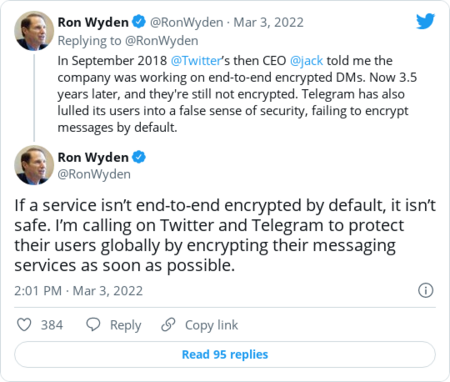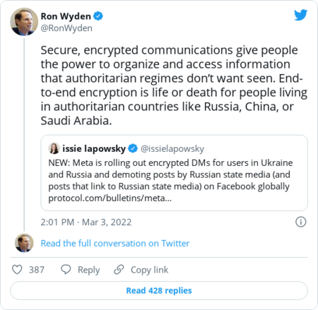 | Happy Tuesday! Below: Gig workers have been hit hard in Russia, and the Supreme Court rules on two tech cases. First: | Why encryption can be a matter of 'life or death' in Russia, Ukraine | Sen. Ron Wyden (D-Ore.) is a top privacy advocate on Capitol Hill. (Drew Angerer/Getty Images) | | | As Russia launched its war in Ukraine, digital messaging services touted privacy features like encryption to ensure users their communications would be protected in the face of potential government surveillance by the Kremlin. But those assurances are now coming under scrutiny from lawmakers and privacy advocates who say that top companies, namely Telegram, have overpromised or underdelivered in their pledges to keep users' messages safe in Ukraine and Russia. Technology experts and privacy advocates say the protections are crucial to secure sensitive online discussions during wartime, when governments may look to crack down on protesters, squelch dissent or use surveillance to aid in military operations. After Russia invaded last month, downloads of messaging apps, like Signal and Telegram, that offer encryption surged as users looked for safe channels to communicate. Since then, other major tech companies have responded to security concerns by expanding their use of encrypted messages. Instagram parent company Meta said last week that the platform will offer users in Russia and Ukraine the option to encrypt their direct messages. But key apps are drawing criticism for requiring that users opt in to encrypt their messages and for offering limited or no protection. Chief among them: Telegram. The messaging service, which is massively popular in both Russia and Ukraine, offers encryption on some but notably not all of its services. Users can choose to use "secret chats" that are encrypted, but it's not the default way to communicate. And the same protections don't extend to group chats, a popular feature that can put thousands of users in touch at once. | | Despite those limitations, Telegram is often referred to as an "encrypted" service and billed as a top platform for safe and secure private messaging, to the chagrin of some. Eva Galperin, director of cybersecurity at the Electronic Frontier Foundation: | | Signal founder Moxie Marlinspike, whose rival messaging service does offer end-to-end encryption by default, swiped at Telegram as the Russian invasion was kicking off. Now, one top U.S. lawmaker is renewing calls for Telegram and other tech companies to expand their privacy protections, citing concerns about the safety of users in Europe. In a series of tweets last week, Sen. Ron Wyden (D-Ore.) took aim in particular at Telegram and Twitter, which he said had indicated it was working on encrypted messaging but never delivered. | | Wyden told The Technology 202 on Monday that Telegram has "benefitted from the press routinely describing it as an 'encrypted messaging app' " and that it has "lulled Telegram's users into a false sense of security." Wyden said encryption protections are akin in digital safety to a "seat belt in a car," and he called it "dangerous and irresponsible for Twitter to offer its direct messaging service to users in authoritarian countries without end-to-end encryption." | | Telegram did not respond to requests for comment on Wyden's remarks. Twitter declined to comment. Coding language discovered in 2018 revealed that Twitter was developing an encrypted messaging feature. Wyden said former Twitter CEO Jack Dorsey confirmed to him that the company was working on it during a private meeting that same year, but the plans never fully materialized. Encryption isn't the only security tool that advocates are pressing companies to beef up amid the invasion in Ukraine. Privacy advocates, including Wyden, say features allowing users to automatically delete messages after a certain period of time are a critical tool that limits surveillance of past exchanges. Like automatic end-to-end encryption, Wyden said, "This feature could mean the difference between life and death." | | |  | Our top tabs | | Russian gig workers are losing their livelihoods | Russian citizens are being hit by tech companies' decisions to pull out of Russia. (Andrey Rudakov/Bloomberg News) | | | Tech companies' decisions to pull out of Russia have affected tens of thousands of Russian video game streamers, gig workers, sex workers and computer programmers, Nitasha Tiku and Gerrit De Vynck report. The impact on Russian citizens shows how U.S. tech companies haven't developed coherent policies or allegiances in the event of international conflicts, even as their products are adopted by people worldwide. "Much of the pressure on tech companies to cut off Russia has come from Ukraine's minister of digital transformation, Mykhailo Fedorov, who has led a campaign on social media and through a network of Ukrainian expats to convince Western companies to cut off business in Russia in order to put more pressure on the government," Nitasha and Gerrit write. | Supreme Court unloads two tech decisions | Justice Clarence Thomas called on the court to address the scope of Section 230. (Jonathan Newton/The Washington Post) | | | The high court declined to hear Google's challenge of a lawsuit that accused the company of making false or misleading statements to federal regulators after it didn't report the exposure of data belonging to around 500,000 users of its Google+ social network, Reuters's Lawrence Hurley reports. Google eventually shut down Google+. "The San Francisco-based 9th U.S. Circuit Court of Appeals in June 2021 decided that the lawsuit raised a 'strong inference' that Alphabet's then-Chief Executive Larry Page and his successor, Sundar Pichai, knew about the problem and an internal memo on security matters but intentionally concealed the information from investors," Hurley writes. In other Supreme Court news: Supreme Court Justice Clarence Thomas again argued that the court should take up Section 230, which offer