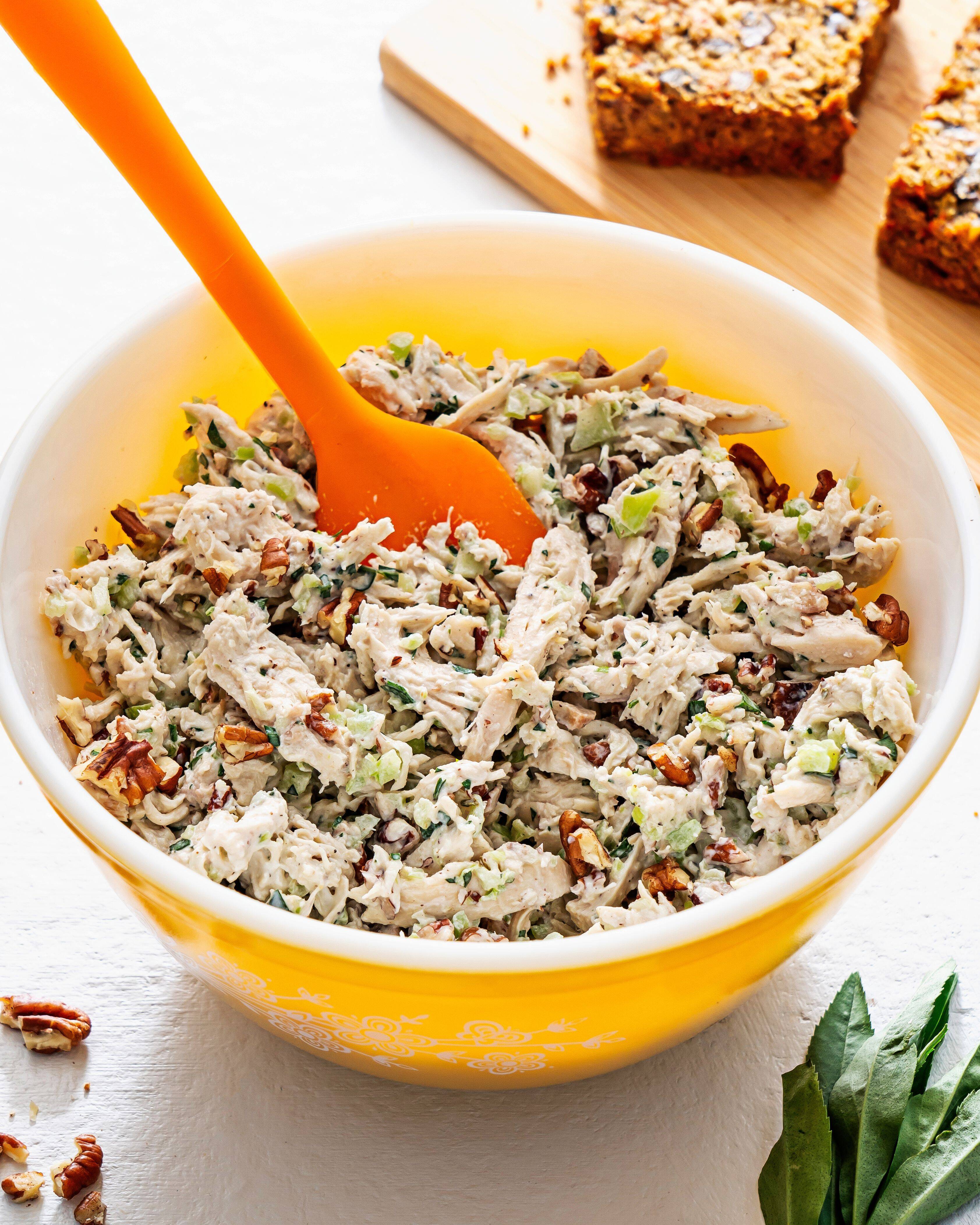 Steps1. Position a rack in the middle of the oven and preheat to 375 degrees. Generously grease a large, rimmed baking sheet with butter. 2. Scatter the onion slices and a generous amount of herbs on the baking sheet, then lay the chicken breast halves on top, skin side up, in a single layer. Sprinkle with lemon juice, then season lightly with salt and pepper. Roast for 30 to 40 minutes, until the meat's juices run clear, and the internal temperature is 155 degrees. Do not overcook. Let the chicken rest for 5 minutes and check the temperature again, it should be 165 degrees. Let cool. 3. Discard the herbs and onions. Remove and discard the skin and bones and shred the chicken, or cut it into slivers or small cubes, and transfer to a bowl. Add the tarragon and season lightly with salt and pepper, tossing to incorporate. 4. In a separate bowl, stir together the sour cream and mayonnaise until combined. Add to the chicken a bit at a time to produce a salad that is creamy but not wet. Mix in more of the sour cream and mayonnaise, until you reach desired texture. 5. Stir in the celery and the pecans, if using. Taste, and season with more salt and/or pepper, if desired. Serve, or refrigerate and serve chilled. Adapted from "Entertaining" by Martha Stewart (Clarkson Potter, 1982). Tested by Ann Maloney. Nutrition information per serving (based on 6): Calories: 140; Total Fat: 6 g; Saturated Fat: 2 g; Cholesterol: 60 mg; Sodium: 180 mg; Carbohydrates: 0 g; Dietary Fiber: 0 g; Sugars: 0 g; Protein: 21 g.  | Dessert | 🎧 "Chicken Teriyaki" by RosalÃa. 📺 How dishwashers clean dishes. 📰 "Do dreams mean anything?" by Allyson Chiu in The Post. 👀 The Gardener. 🗣 If you liked this newsletter, please forward it to a friend! |