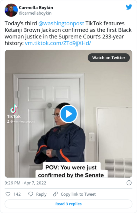| Senate confirms Jackson to the Supreme Court | | The Senate voted Thursday to confirm Judge Ketanji Brown Jackson to the Supreme Court to replace retiring Justice Stephen G. Breyer this summer, The Post's Mike DeBonis and Seung Min Kim report. | - Republican Sens. Susan Collins (Maine), Lisa Murkowski (Alaska) and Mitt Romney (Utah) joined all Democrats in voting for Jackson.