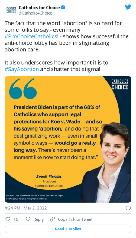 | | This decision is strategic, as some lawmakers home in on what unites voters on the issue — "freedom" over control, "personal decisions" over limitations, said Celinda Lake, one of Biden's lead pollsters in 2020. But abortion rights groups argue not explicitly using the term could backfire. | - "Voters want to know where their lawmakers stand," said Mini Timmaraju, president of NARAL Pro-Choice America. "Using euphemisms can fuel stigma and being direct about support for abortion rights is not only the right thing to do, but also politically advantageous."