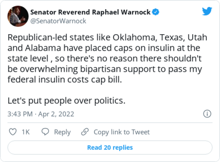 | | Yet, the legislation would need the support of at least 10 Republicans to clear the chamber. There's a huge question mark over whether that will be possible. As Mitchell put it, "We don't know where those 10 votes are." | | Sen. Raphael Warnock (D-Ga.): | | | | | | Remember Build Back Better? In the fall, Democrats clinched a compromise on a more comprehensive drug pricing bill between warring factions of its own party. The legislation included the $35 monthly out-of-pocket cap, but also other sweeping provisions, such as allowing Medicare to negotiate the price of medicines — a process which would apply to all insulin products. Democrats' economic package has been languishing on Capitol Hill for months. But if it does get revived, the drug pricing policies would likely be included, particularly since they have the support of Sen. Joe Manchin (D-W.Va.). | | However, health-care lobbyists expect Republicans would challenge whether the $35 cap for those with private insurance complies with the procedural rules Democrats would use to pass such a package. That could ultimately mean part of the policy to lower patients' insulin costs gets axed — unless it passes through one of the two efforts detailed above. | | |  | Reproductive wars | | Some Democrats are talking about abortion — but without saying the word | Demonstrators advocate for abortion rights. (Justin Sullivan/Getty Images) | | | Abortion rights groups are pressuring some Democratic lawmakers to fully embrace the word "abortion" over more coded language as they seek to mobilize voters ahead of a Supreme Court decision that could overturn Roe v. Wade, our colleague Caroline Kitchener reports. Behind the language: Democrats facing competitive races in 2022 and 2024 — including President Biden — have rarely used the word "abortion." Instead, they've relied on terms like "reproductive freedom" and "a constitutional right." | - Biden has included the word in three public statements and one tweet, but hasn't said it in public as president.