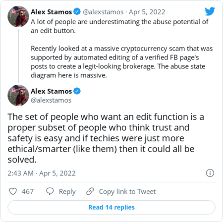 | | Twitter and other social media platforms have come under fire for continuing to host Russian government accounts, which critics say are a key part of the Kremlin's propaganda machine. | A new report accuses Instagram of failing to address harassment | Direct messages are an easy place for harassers to operate. (Andrew Harrer/Bloomberg News) | | | Instagram failed to act on 90 percent of abuse sent through direct messages to five high-profile women even though the messages were reported to moderators, according to the report by the nonprofit Center for Countering Digital Hate. CCDH analyzed thousands of direct messages that the women received, Taylor Lorenz and Elizabeth Dwoskin report. "Instagram's direct message, or DM, function is private and operates like an email inbox," they write. "It's also long been a less-visible hotbed for hate, in part because of its private nature. " Instagram strongly rebutted the report. "While we disagree with many of the CCDH's conclusions, we do agree that the harassment of women is unacceptable. That's why we don't allow gender-based hate or any threat of sexual violence, and last year we announced stronger protections for female public figures," Meta head of women's safety Cindy Southworth said. | Musk's ascent to Twitter board draws mixed reactions | Some Trump supporters called on Elon Musk to reinstate the former president's Twitter account. (Patrick Pleul/Pool/AP) | | | The prospect of Elon Musk micromanaging Twitter has sent its stock soaring, employees reeling and Republican leaders clamoring for it to take a more permissive stance on political speech, Will Oremus, Elizabeth Dwoskin, Faiz Siddiqui and Reed Albergotti report. Musk's term on Twitter's board will extend through 2024, according to a regulatory filing. Employees at Twitter are anxious about how the Tesla founder and prolific tweeter could complicate their work. In an attempt to reassure her team, a senior Twitter executive said in an open letter that the work of combating "hate speech and trolls" was "bigger than any board member," according to internal documents obtained by The Washington Post. Twitter pushed back on the prospect that Musk, now the company's largest shareholder, would wield outsize control. "Our Board plays an important advisory and feedback role across the entirety of our service," spokesperson Brenden Lee said in a statement. "Our day-to-day operations and decisions are made by Twitter management and employees." Musk did not respond to a request for comment. | | |  | Rant and rave | | | The Internet speculated about the role Musk could play on Twitter's board. After Musk posted a poll asking users whether they wanted the ability to edit their posts, the company announced that it would be testing such a feature and said it "didn't get the idea from a poll." KTLA-TV's Rich DeMuro: | | The Stanford Internet Observatory's Alex Stamos: | | Our colleague, Taylor Lorenz: | | |  | Inside the industry | | | |  | Workforce report | | | |  | Trending | | | |  | Daybook | | - The Atlantic Council hosts an event on tech diplomacy today at 10:15 a.m.