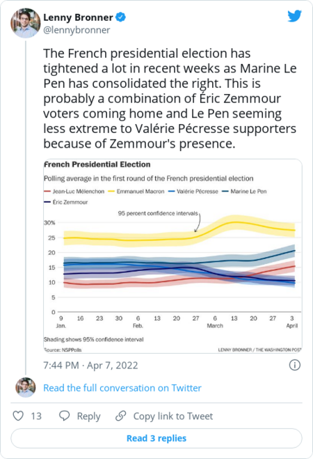 French presidential candidate Marine Le Pen is seen in silhouette as she holds a campaign rally in Perpignan, France, on April 7. (Lionel Bonaventure/AFP/Getty Images) | More than a month ago, French President Emmanuel Macron's reelection seemed a certainty. He comfortably led in the polls ahead of rivals to the left and right. The French public watched in shock as Russian forces poured into Ukraine. Macron's main challenger, far-right perennial Marine Le Pen, was hobbled by her historic rapport with the regime of Russian President Vladimir Putin and stated admiration for his approach to governance. A second-round runoff against either Le Pen or far-left candidate Jean-Luc Mélenchon, another figure with a dim view of NATO and a perceived friendliness toward Putin, was bound to be a formality. Macron, who came to power in 2017 as a radical centrist eager to shake up French politics and play a more assertive role on the European stage, embraced the part of continental statesman. "People always rally around a wartime leader," Nicholas Dungan, a senior fellow of the Atlantic Council, told my colleague Rick Noack. "The leadership by Macron is completely consistent with the image the French have of what their country should be doing: It's a global power, it needs to be listened to, it should be aiming for peace." As Sunday's first-round vote nears, though, Macron has reason to sweat. He will likely finish at the top of the pack, but polls now show a statistical toss-up between him and Le Pen should they face each other in the second round on April 24. "It's one minute to midnight," former prime minister Manuel Valls wrote in a column in French weekly Le Journal du Dimanche. "Marine Le Pen could be elected president of the republic." Le Pen has closed the gap on Macron no matter the bad odor of her and her party's Russophilia — her supporters had even circulated a campaign leaflet showing her shaking Putin's hand — and the frequent broadsides from Macron's camp. French Finance Minister Bruno Le Maire said Thursday that, in a France led by Le Pen, "there would be less sovereignty because we would be allies of Russia, of Vladimir Putin." The reality is Le Pen has surged on the back of voter concerns that have little to do with the geopolitics of ending the war in Ukraine. "Polls show that a majority of the French worry that the cost of living has increased under Macron's presidency, even as the economy overall has weathered the coronavirus pandemic and other crises," my colleagues explained. "The war in Ukraine has prompted growing concerns over rising inflation, surging energy prices and insufficient pensions." Le Pen, who lost in a landslide to Macron in 2017, has tried to detoxify her and her party's image as one steeped in neo-fascist resentments, racism and anti-Semitism. She was aided by the maverick campaign of ultranationalist gadfly Eric Zemmour, whose snarling anti-immigrant, anti-establishment rhetoric has made Le Pen — a far-right mainstay for years — look comparatively moderate. And her campaign has waved the banner of economic populism as much as it also tries to harness far-right cultural anxieties. Le Pen condemned the invasion of Ukraine as a violation of international law and has welcomed Ukrainian refugees. "She was able to change her brand image," David Dubois, professor of digital marketing at Insead, a leading business school, told the Financial Times. "She's really made an effort to change her discourse from immigration to rising prices and how to increase the purchasing power of French people." Contrast that with Macron, who has throughout his five years in power been viewed as an aloof elitist — a "Jupiterian" president, as the French put it, ensconced in his Olympian abode. The former investment banker is attacked both by Le Pen and his critics to the left as an effete figure ruling for the rich, disconnected from the concerns of ordinary French workers. "Le Pen did a proximity campaign, visiting a lot of small towns and villages. Her trips were not very much covered by national press but had a big echo in local media," Mathieu Gallard, research director at polling firm Ipsos, told Politico. "She gave an impression of proximity, which is very important for French voters." In an interview with the Spectator, a right-leaning British publication, Le Pen cast Macron as an agent of global capital. "The policies I want to implement are not meant for the stock markets, which will be a change from Emmanuel Macron," she said. "It's not the markets that create jobs, it's not international finance." She claimed Macron's objective is "to encourage nomadism, the permanent movement of uprooted people from one continent to another, to make them interchangeable and, in essence, to render them anonymous." (No matter that, on questions of national identity and religious freedoms, Macron's government has pivoted sharply to the right.) When asked what leaders she admired on the world stage, she named three right-wing nationalists: India's Narendra Modi, Britain's Boris Johnson and Putin. "I have respect for Vladimir Putin because he defends the interests of Russia," she said. Such rhetoric suggests that her rebranding is purely cosmetic. That's Macron's contention, anyway. "The fundamentals of the far right are always the same: attacks on and rejection of the Republic, a base of antisemitism — if not overt, at least cultivated — very clear xenophobia and an ultraconservative drive," he said in an interview with Le Figaro, a French daily. |